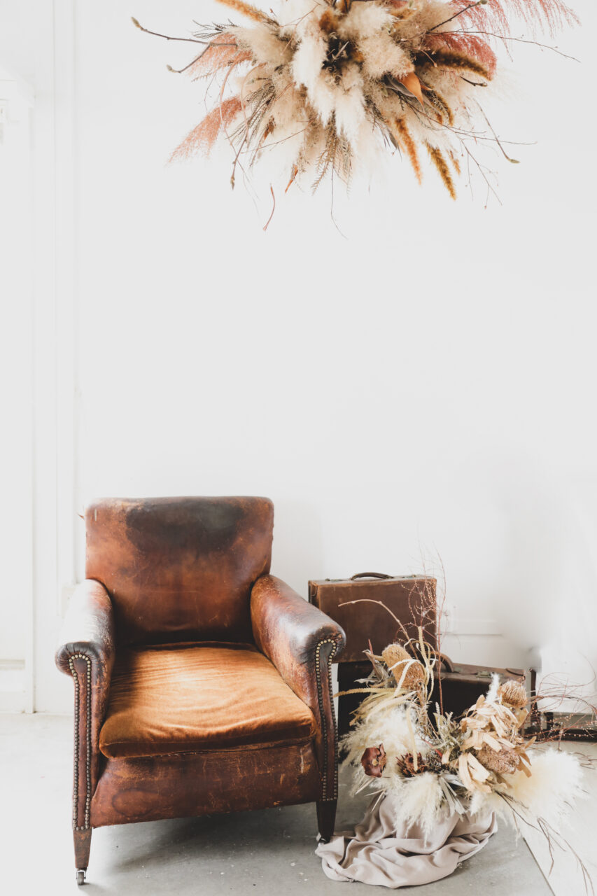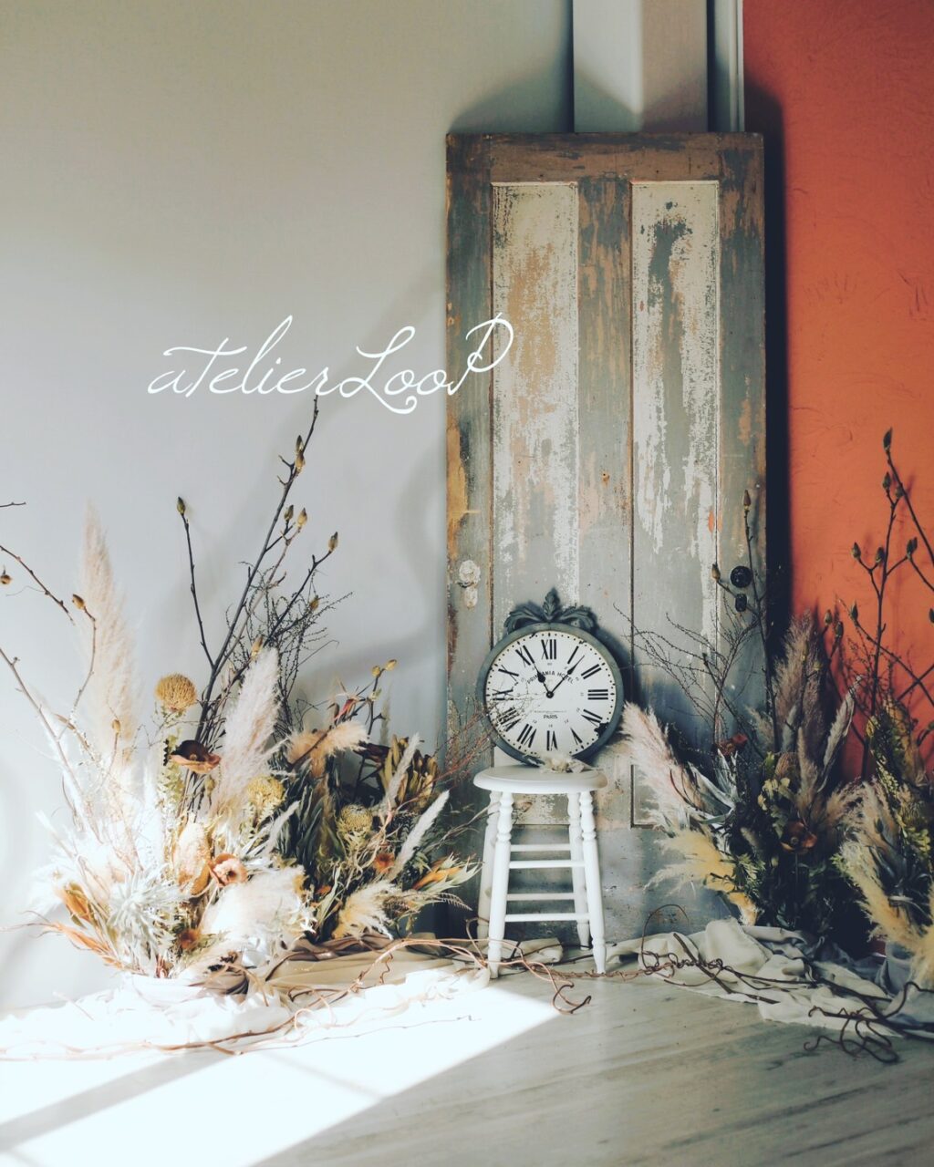 ドライフラワーやアンティークの家具を使用しております