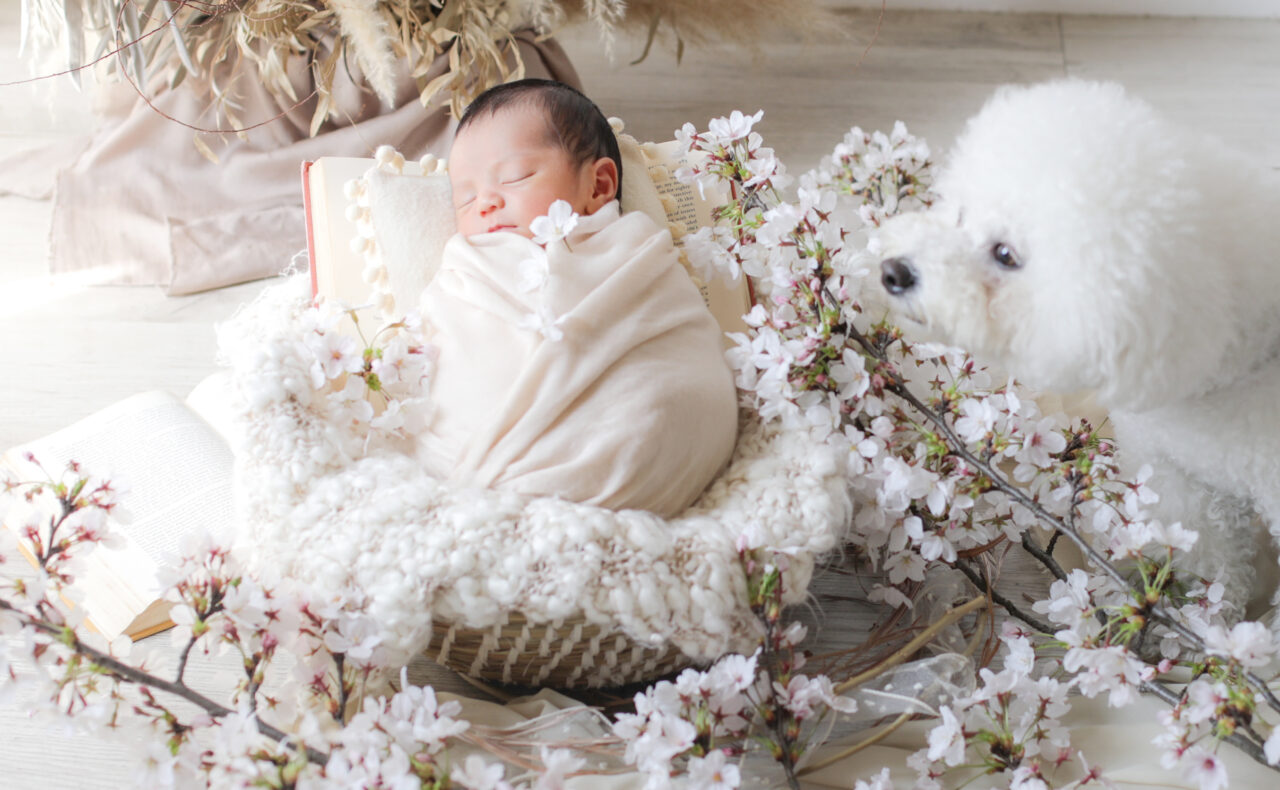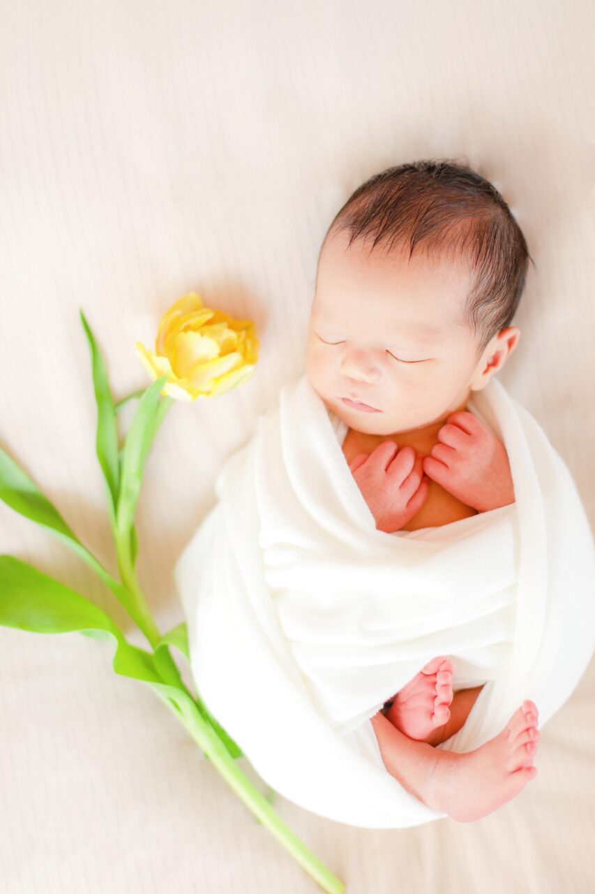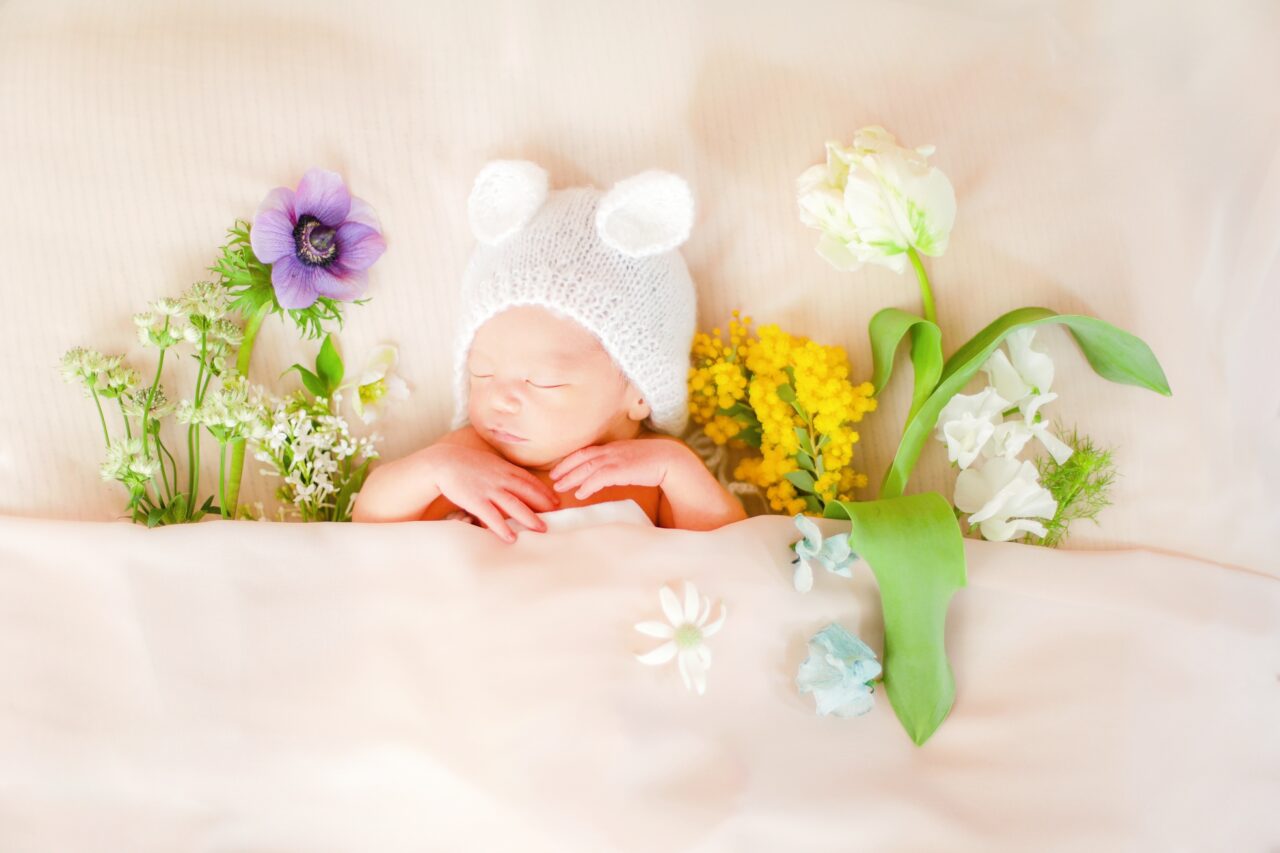 新鮮なお花をプラスするだけでとっても華やかなニューボーンフォトになりますよ^^