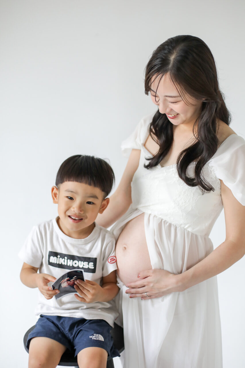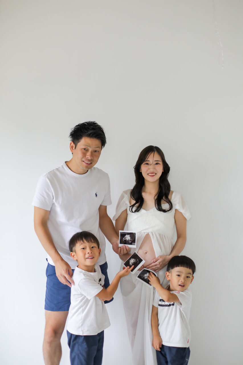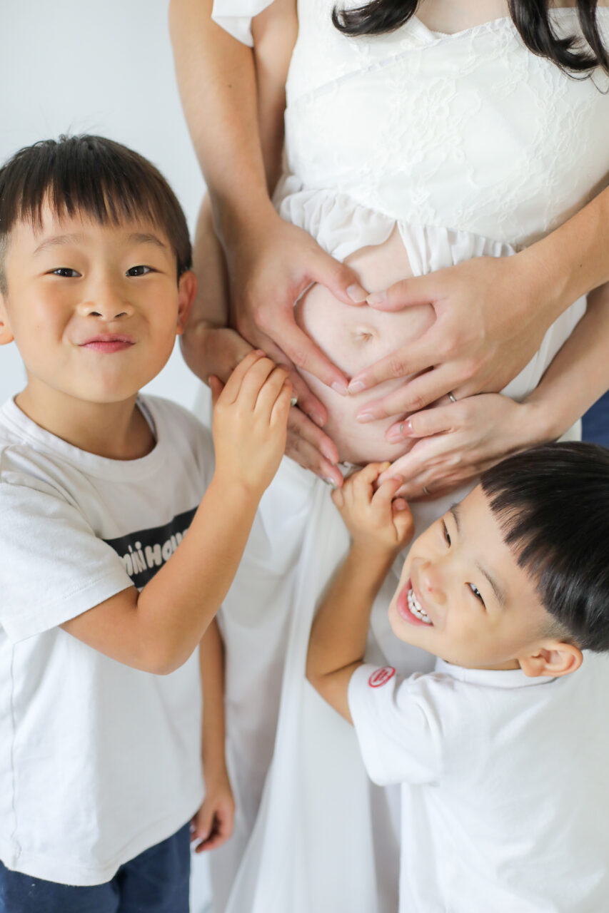 お兄ちゃん達と一緒に撮影するマタニティフォト♪
